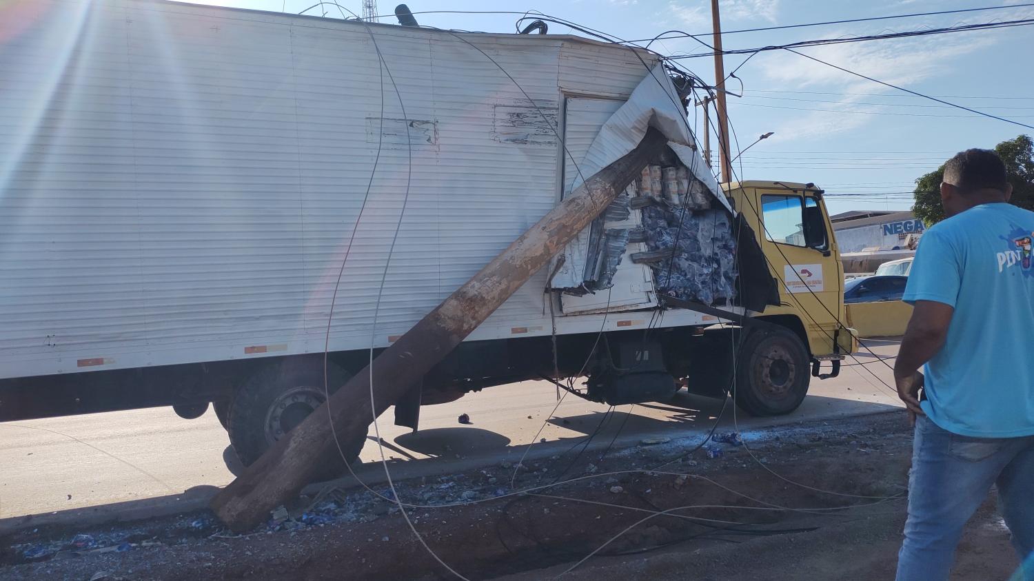 O motorista alegou que a direção do veículo travou e ele perdeu o controle, vindo a Chocar-se com o poste e fiação.