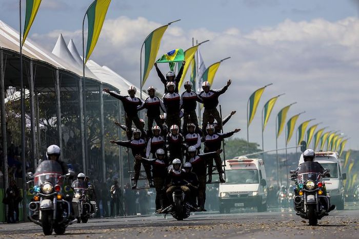 rasília – Atendendo as recomendações do Ministério da Saúde e a ordem expressa do presidente Jair Bolsonaro (sem partido), o tradicional desfile na Esplanada dos Ministérios alusivo ao Dia da Independência nesta segunda-feira, (7), está ocorrendo num novo formato em razão da pandemia de covid-19, informou em nota o Ministério da Defesa. No lugar dele, um evento menor na manhã desta segunda-feira (7) tomará lugar na residência oficial do presidente Jair Bolsonaro, no Palácio da Alvorada. Haverá hasteamento da bandeira no Pavilhão Nacional do Palácio às 10h e apresentação da Esquadrilha da Fumaça por cerca de 10 minutos.