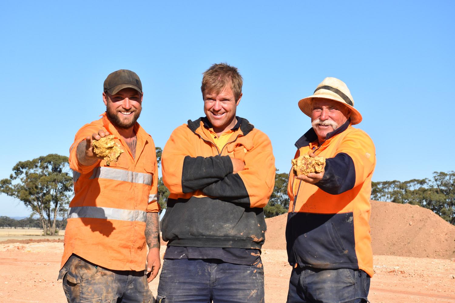 O garimpeiro Brent Shannon e o dele cunhado Ethan West encontraram as pepitas em questão de horas, com a ajuda do pai de West, Paul West.