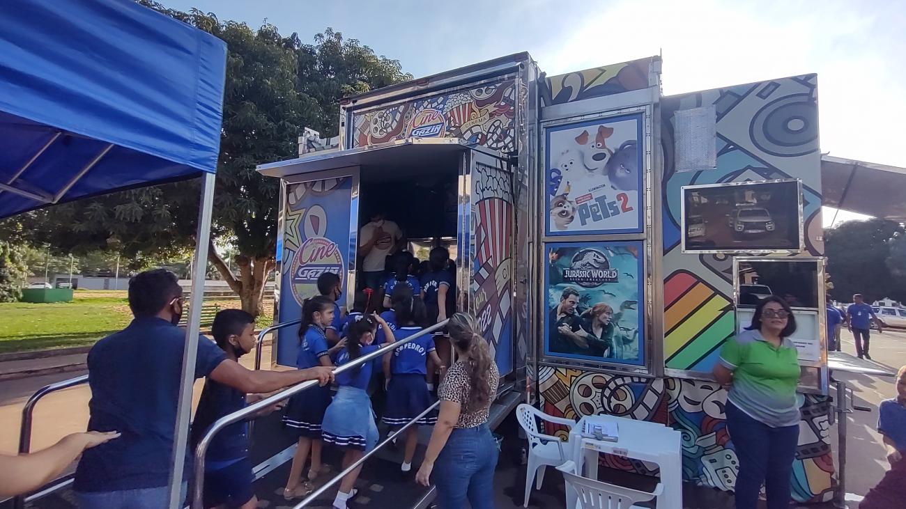 “Trata-se de uma carreta cinema, ou seja, cinema itinerante com a capacidade para acomodar 91 pessoas por sessão, além de oferecer uma estrutura moderna, com recepção para distribuição gratuita de pipoca e refrigerante, sistema de som e imagem digital, banheiros, sala climatizada com inclinação. Além disso, haverá uma equipe que cuidará do atendimento ao público infantil e juvenil”, disse o coordenador do Cine Gazin, Crisitiano Amorim.